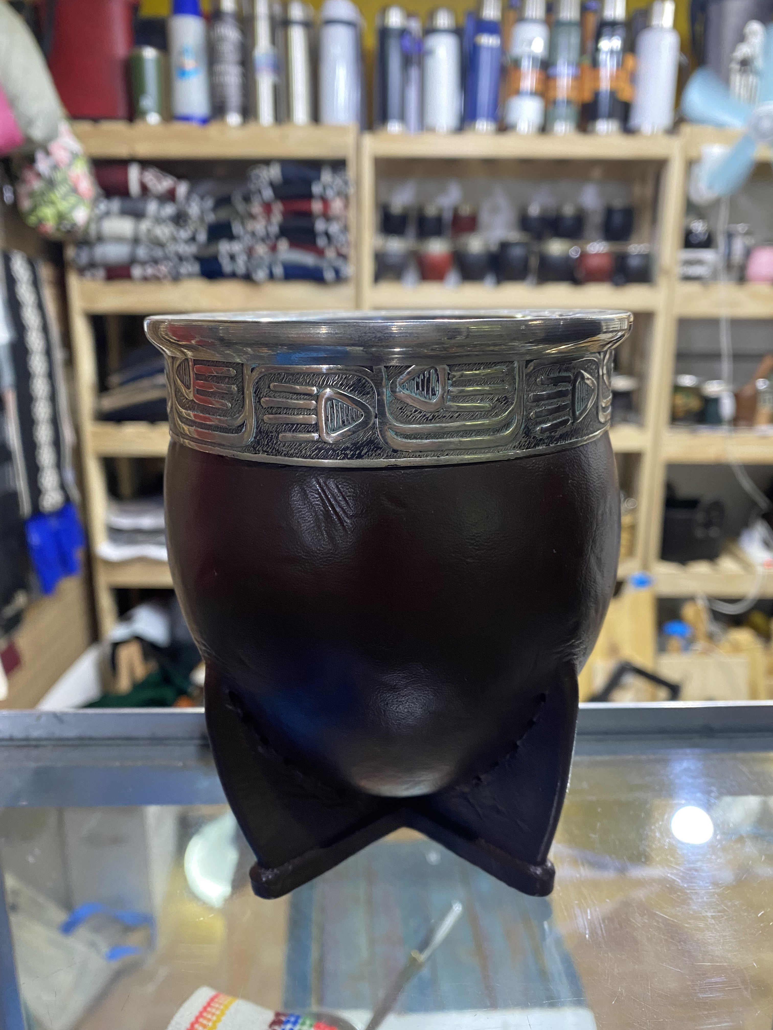 Mate de calabaza imperial, calabaza seleccionada, forrado en cuero cocido a mano, virola de alpaca